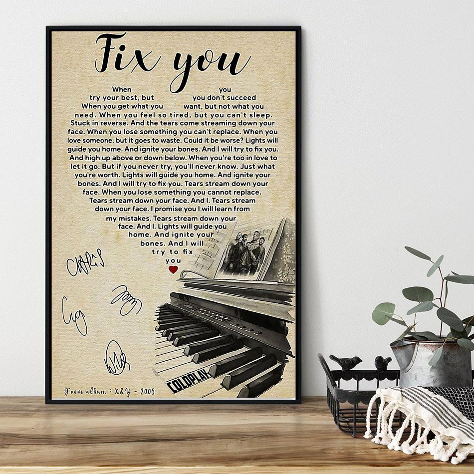 Coldplay Fix You Lyrics Heart Shape Poster