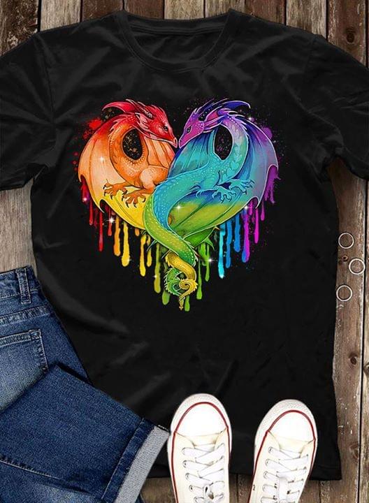 Colorful Fire And Ice Dragon Loving Heart T-shirt Sweatshirt Hoodie