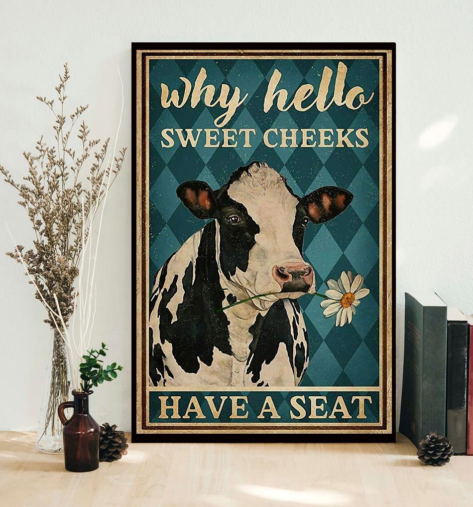 Cow Why Hello Sweet Cheeks Have A Seat Poster Canvas Decor