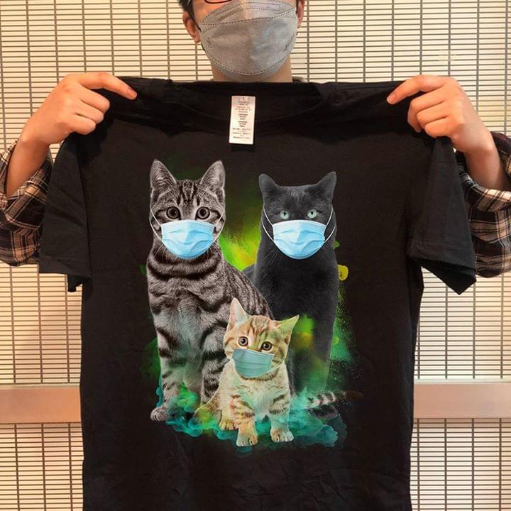 Cute Cats Wearing Face Mask Stay Home T-shirt