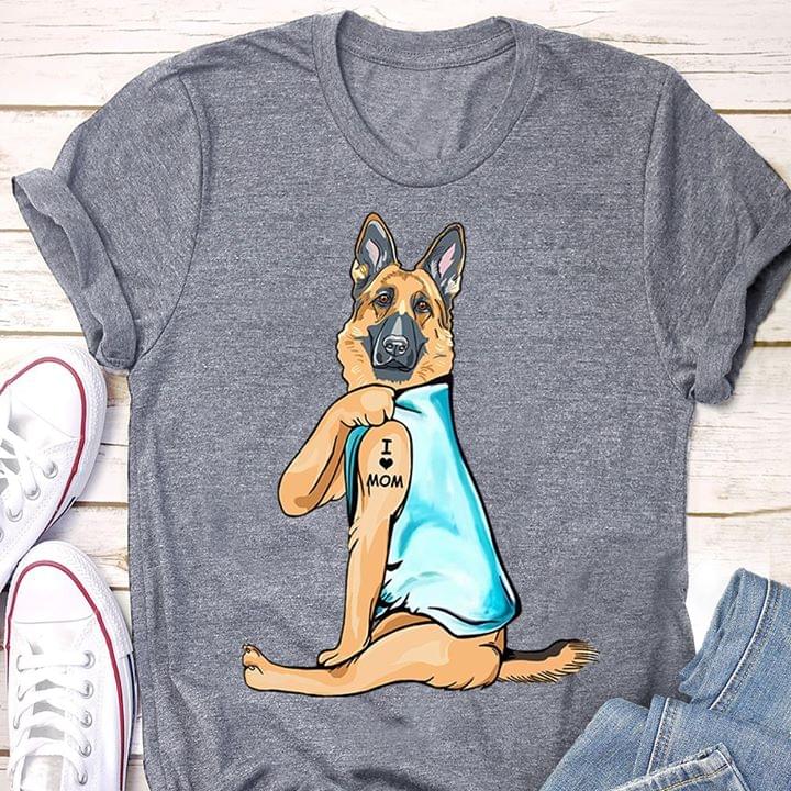 Cute Dog Puppy Becgie German Shepherd I Love Mom Tattoo T-shirt