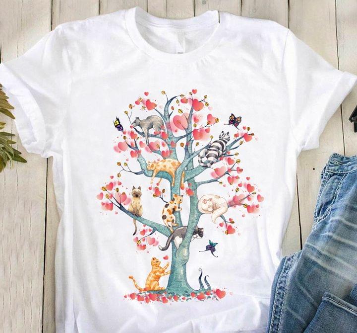 Cute Painted Love Tree With Cats And Butterflies Animals Shirt