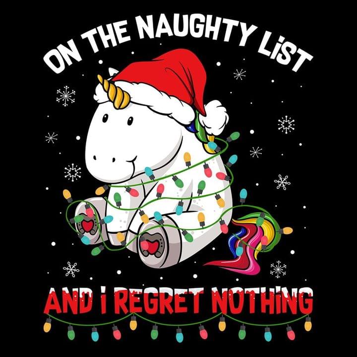 Cute Unicorn On The Naughty List And I Regret Nothing Santa Shirt