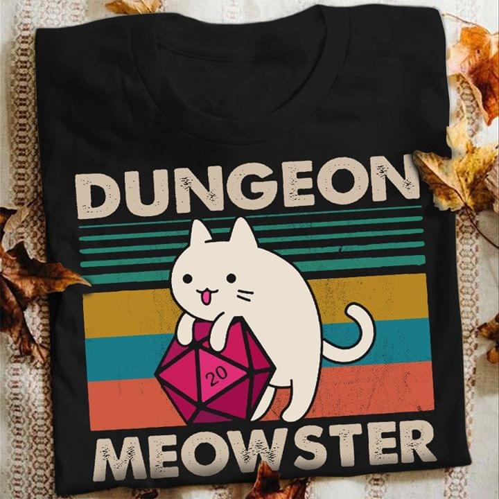 Cute White Cat Vintage Dungeon Meowster Shirt