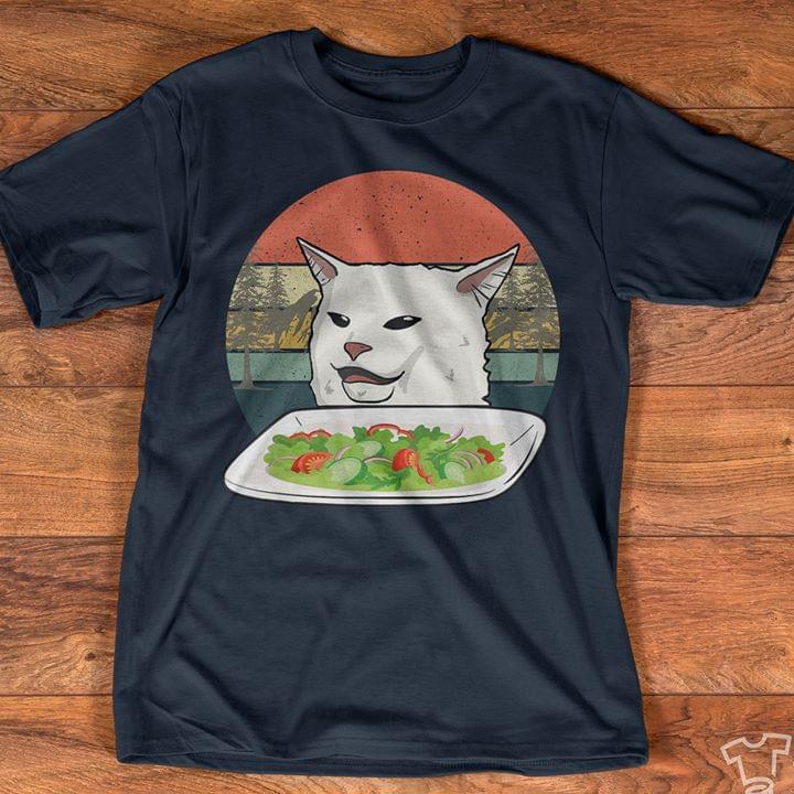 Cute White Meme Vegetable Salad Cat Vintage Shirt