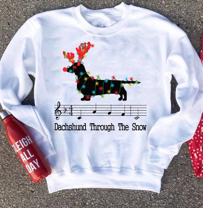 Dachshund Through The Snow Melody Dachshund Dog Wearing Reindeer Headband Christmas Shirt