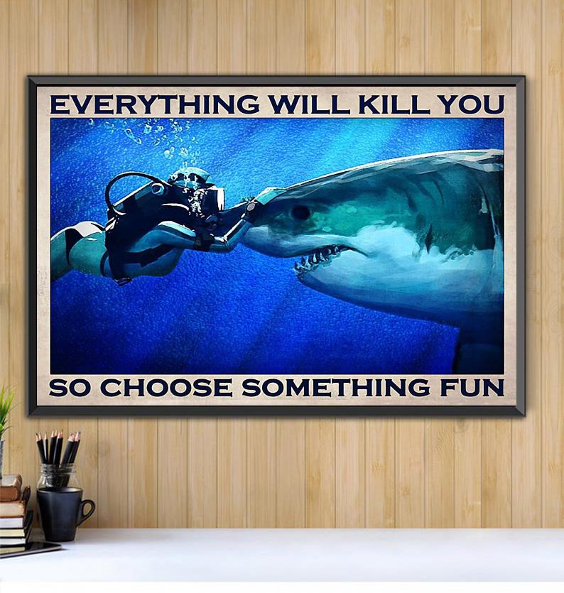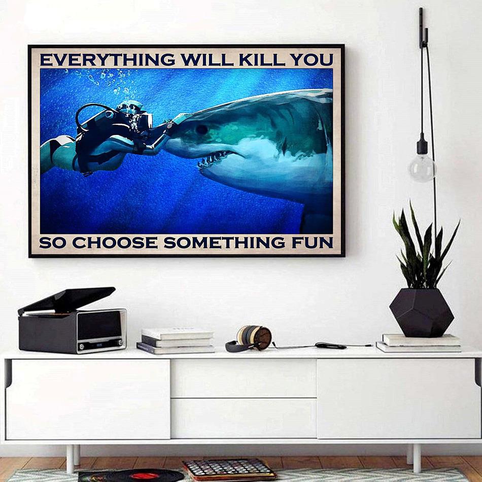Diving Giant Shark Everything Will Kill You So Choose Something Fun Horizontal Canvas