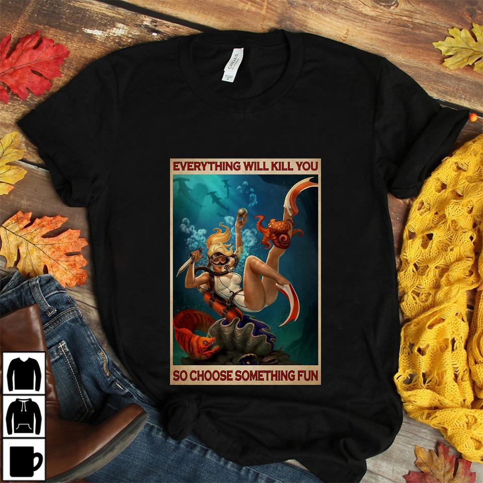 Diving Girl Everything Will Kill You So Choose Something Fun Canvas Unisex T-shirt