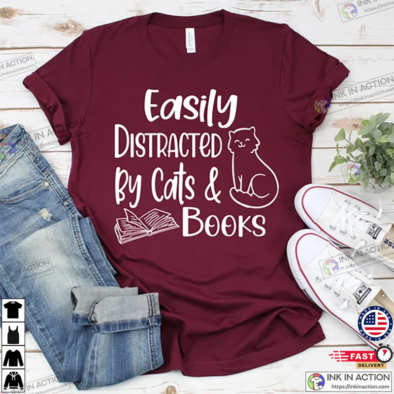 Easily Distracted By Cats And Books Shirt