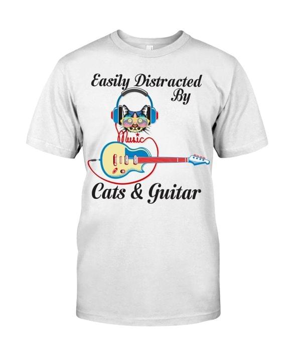 Easily Distracted By Cats And Guitar Music Love Pet Shirt