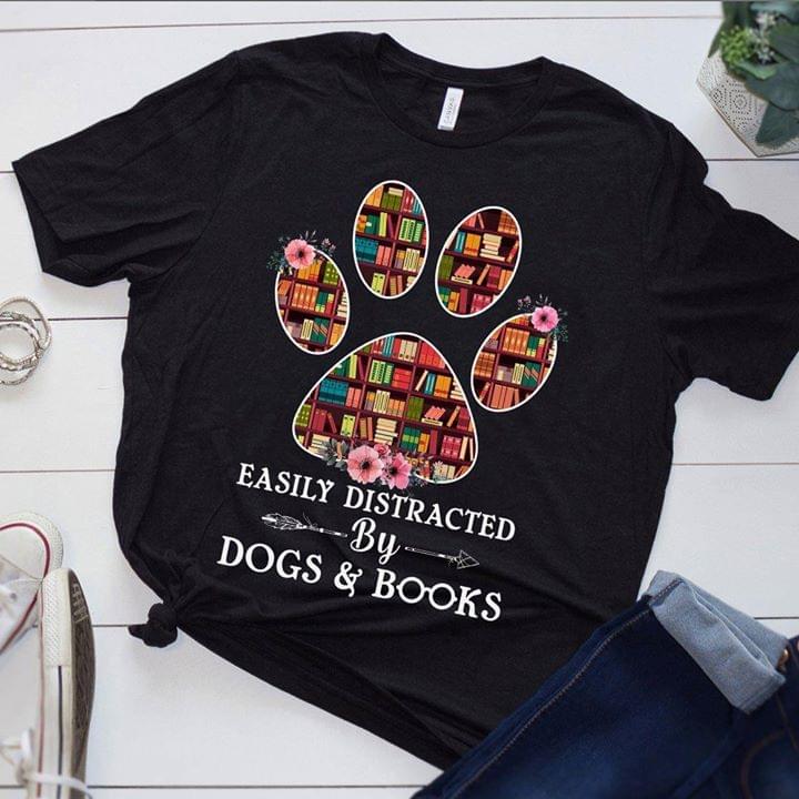 Easily Distracted By Dogs And Reading Books Lovely Girl Shirt