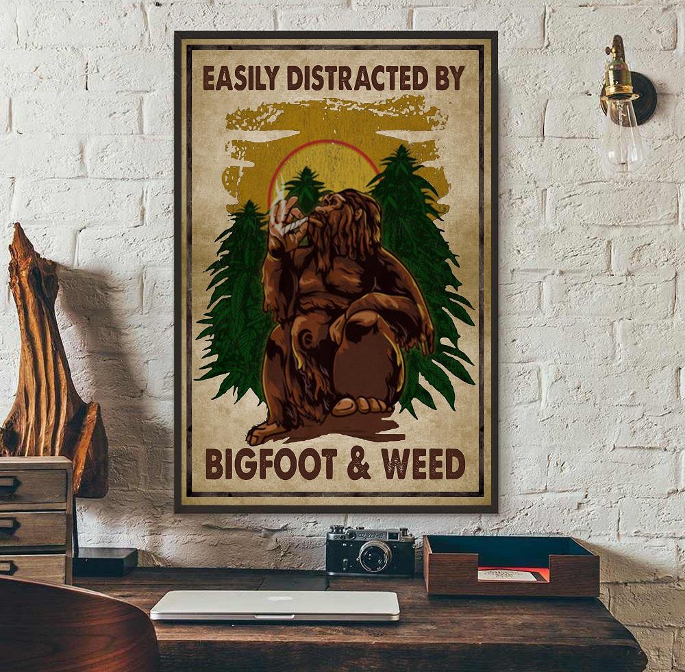 Easily Distracted By Bigfoot And Weed Poster Canvas