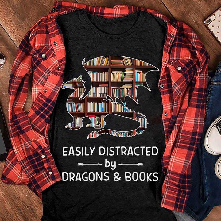 Easily Distracted By Dragons And Books Shirt
