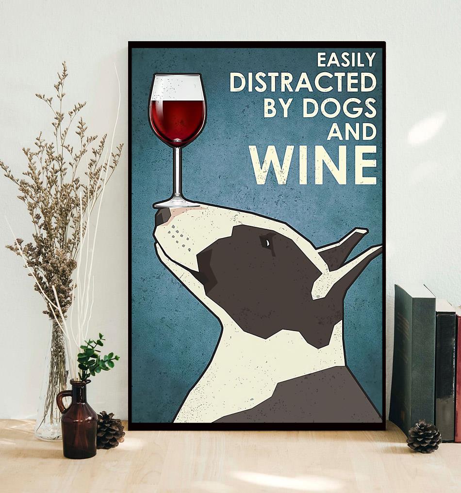 Easily Distracted By Dogs And Wine Bull Terrier Vertical Poster