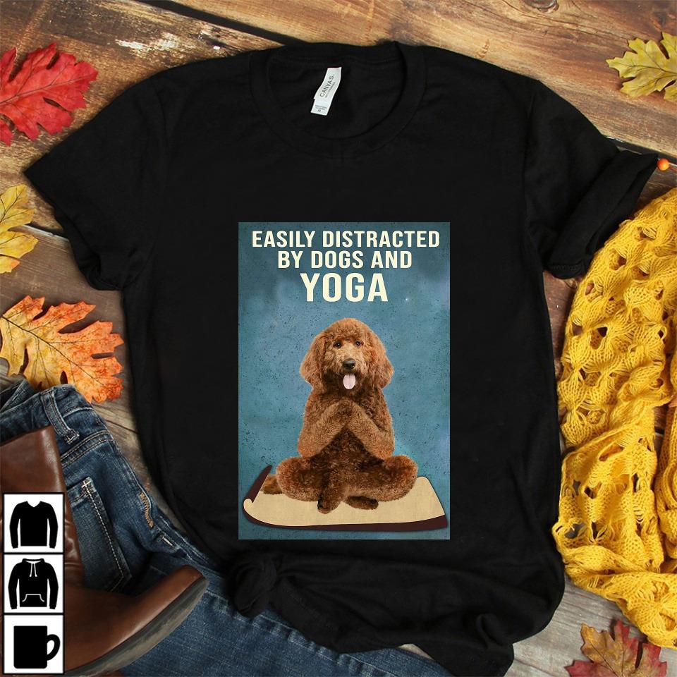 Easily Distracted By Dogs And Yoga Poodle Poster Canvas Unisex T-shirt
