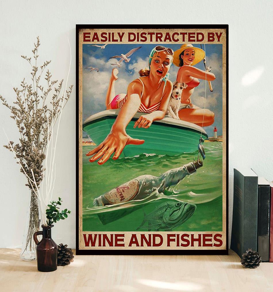 Easily Distracted By Wine And Fishes Poster