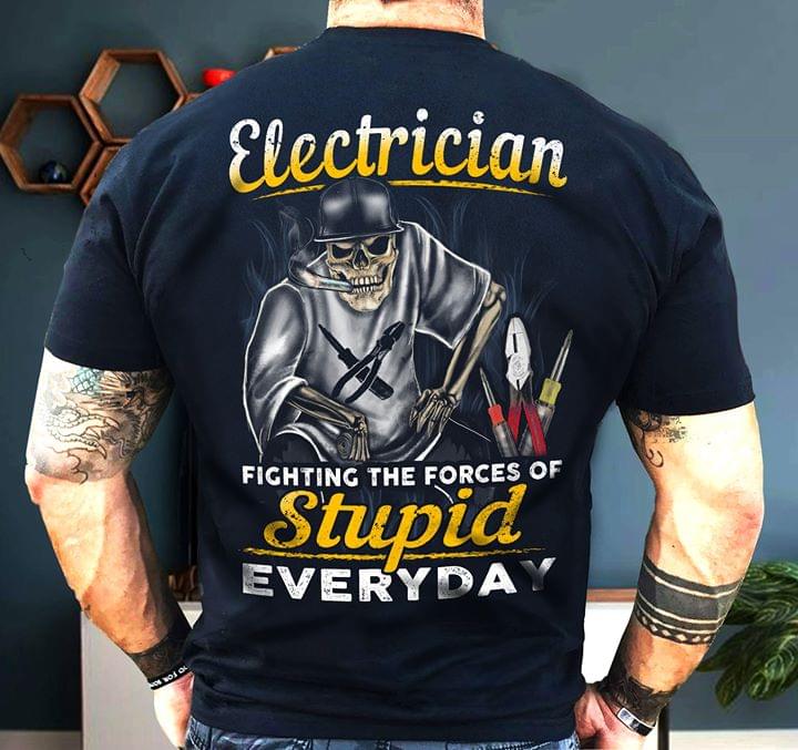 Electrician Fighting The Forces Of Stupid Everyday Job Love Shirt (back Side)