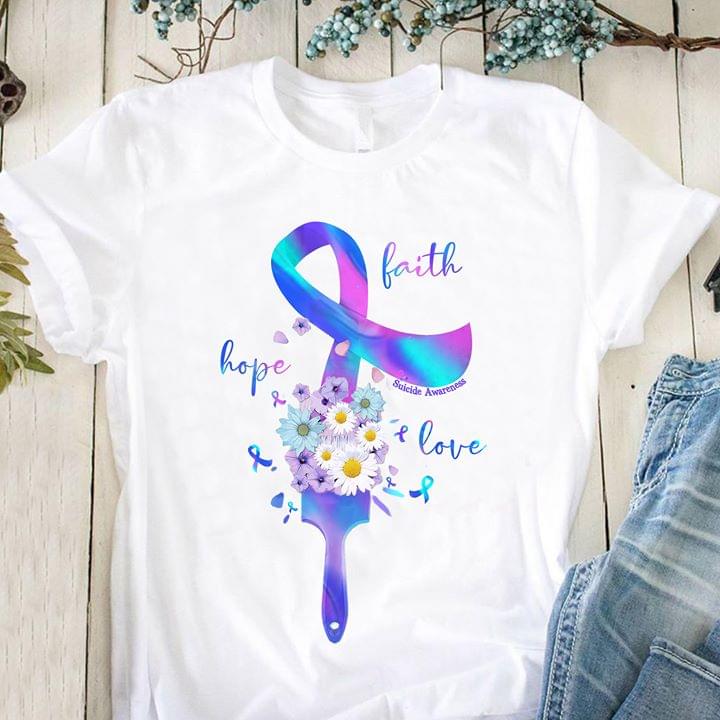Faith Hope Love Suicide Awareness Galaxy Ribbon Shirt