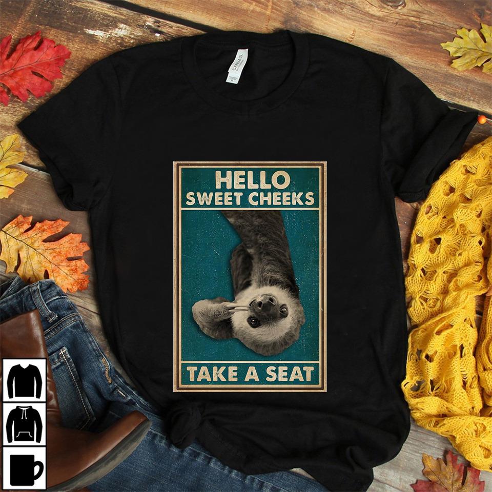 Funny Sloth Hello Sweet Cheeks Take A Seat Cavas Unisex T-shirt