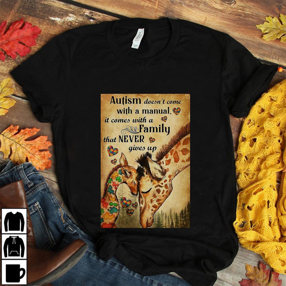 Giraffe Autism Comes With A Family That Never Give Up Poster Unisex T-shirt