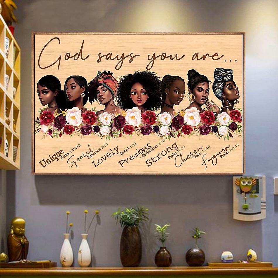 God Says You Are Unique Special Lovely Precious Strong Chosen Forgiven Poster