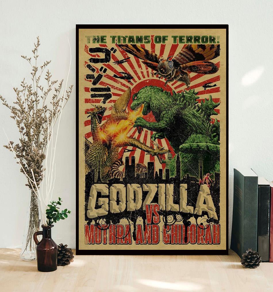 Godzilla Mothra And Ghidorah Poster Canvas Unisex T-shirt