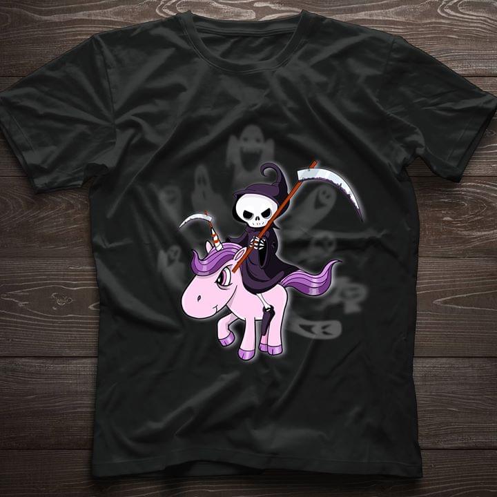 Grim Reaper Riding A Purple Unicorn Halloween Shirt