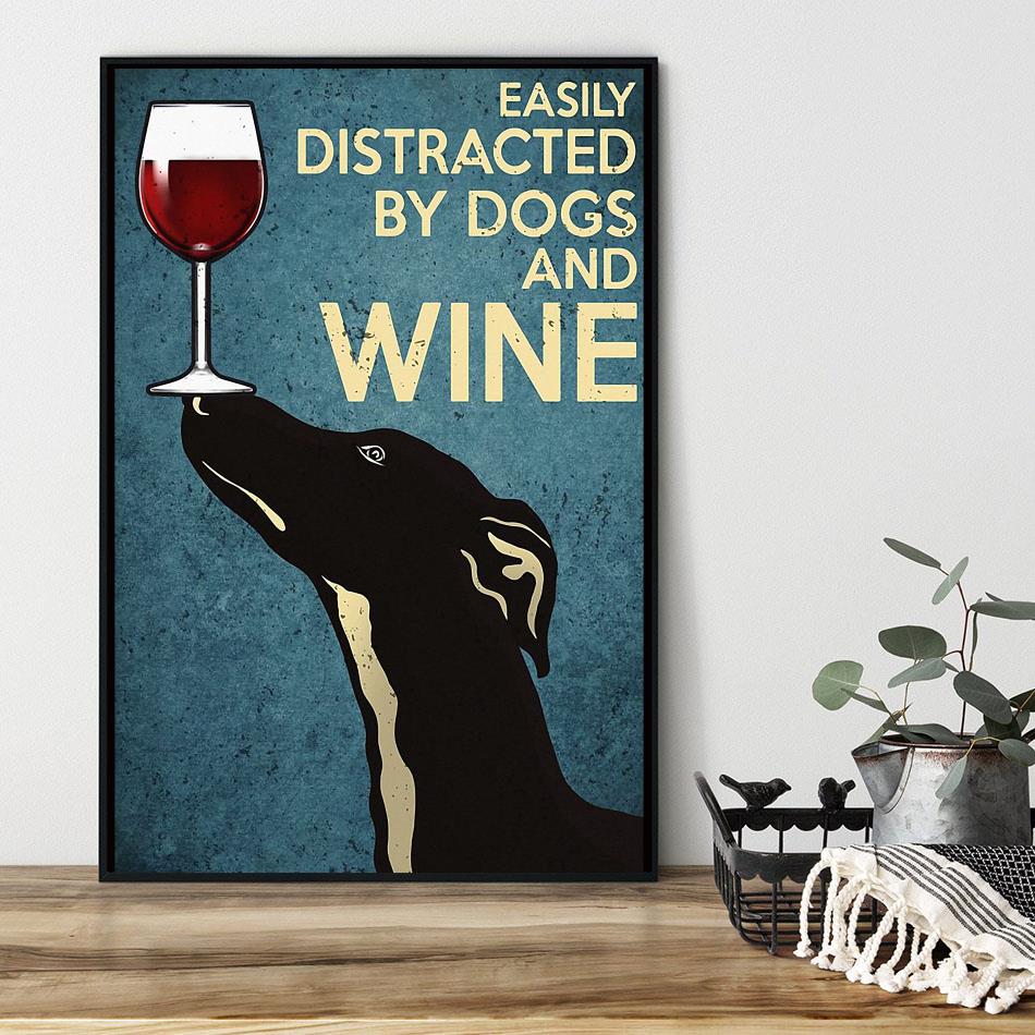 Greyhound Easily Distracted By Dogs And Wine Poster Canvas