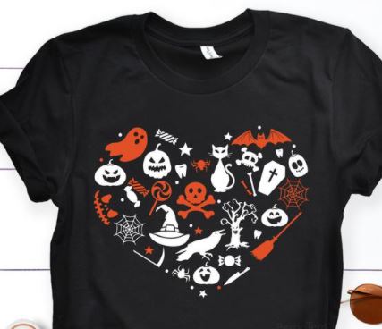 Halloween Pumpkin Ghost Bats Witches Heart Shaped T-shirt Sweatshirt Hoodie
