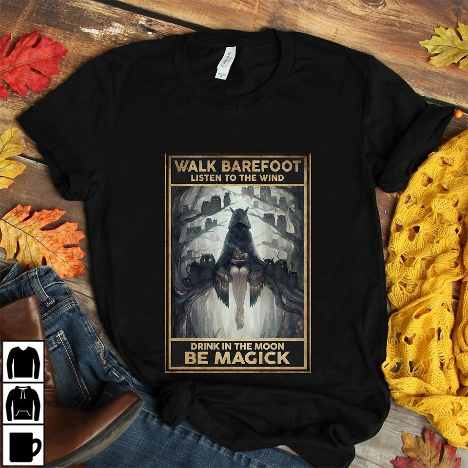 Halloween Witch Walk Barefoot Listen To The Wind Canvas Unisex T-shirt