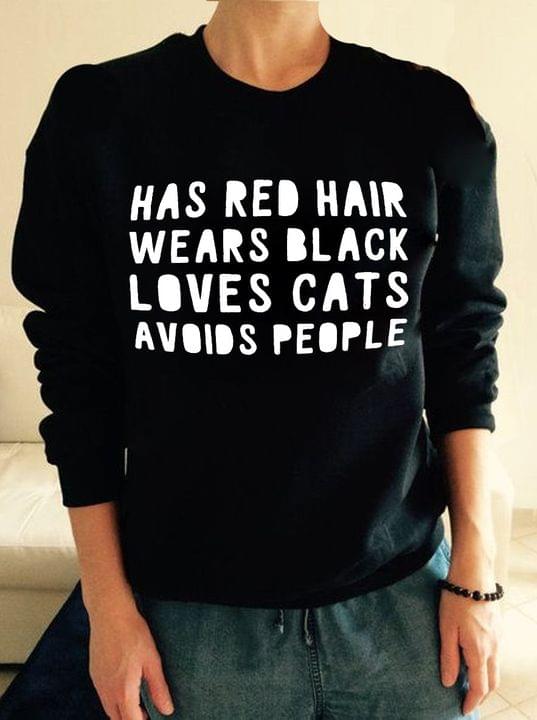 Has Red Hair Wears Black Loves Cats Avoids People Simple Shirt