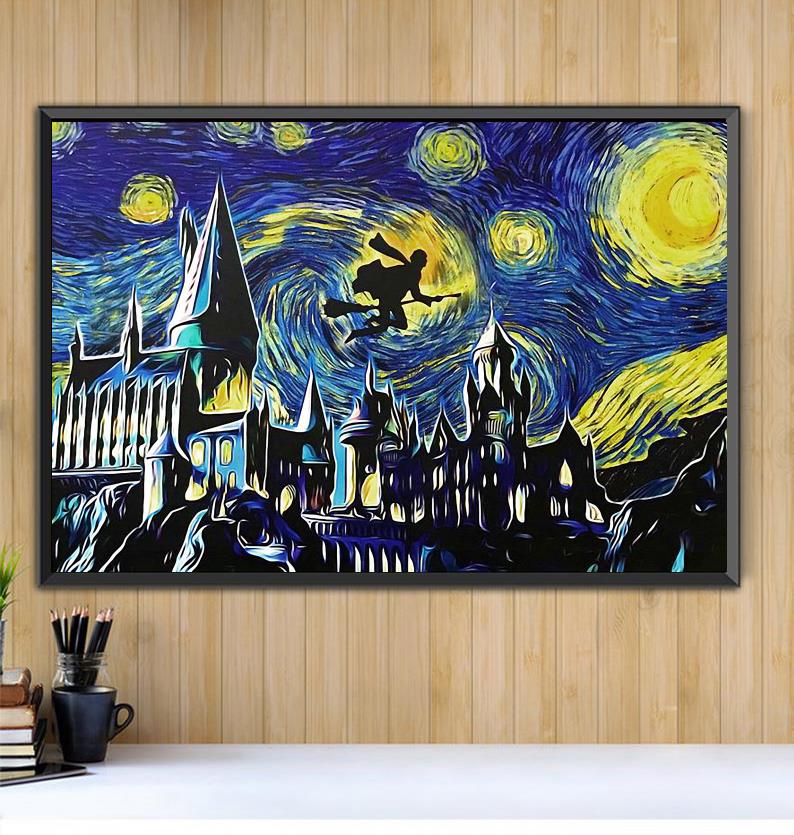 Harry Potter Riding Broom Starry Night Canvas