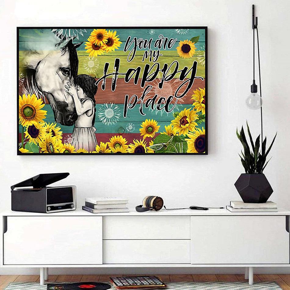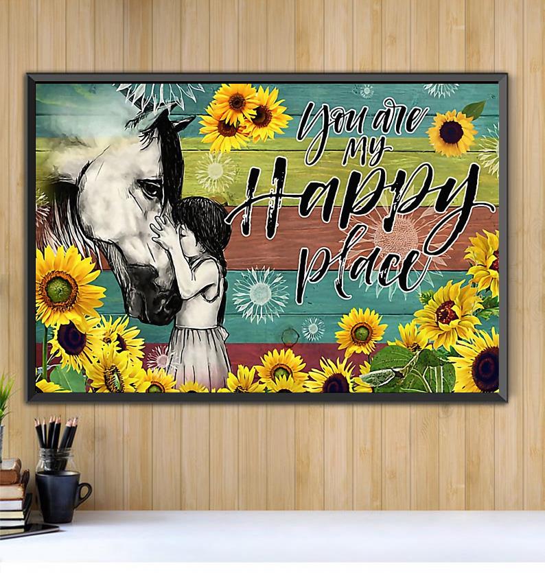 Horse Girl Sunflower You Are My Happy Place Poster Black Canvas