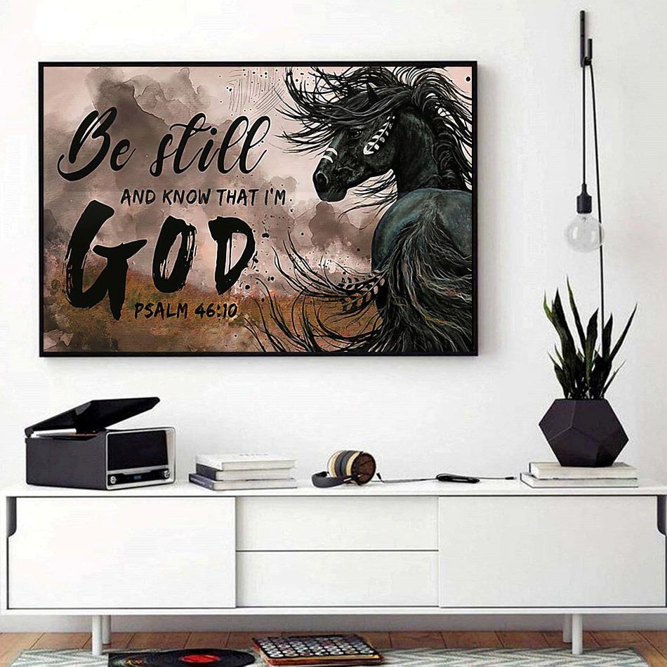 Horse Poster Be Still And Know That I’m God Black Canvas
