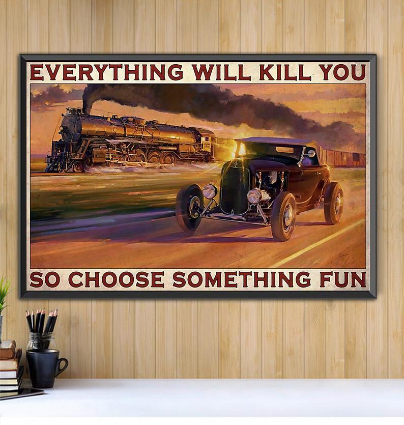 Hot Rod And Train Everything Will Kill You So Choose Something Fun Canvas