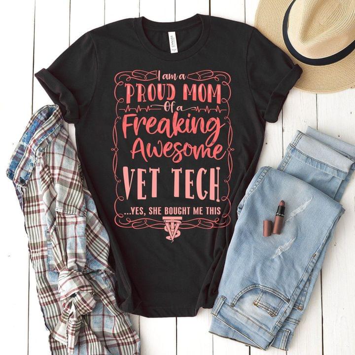 I Am A Proud Mom Of A Freaking Awesome Vet Tech Gifts For Vet Technologist Family Mommy Love Support Shirt