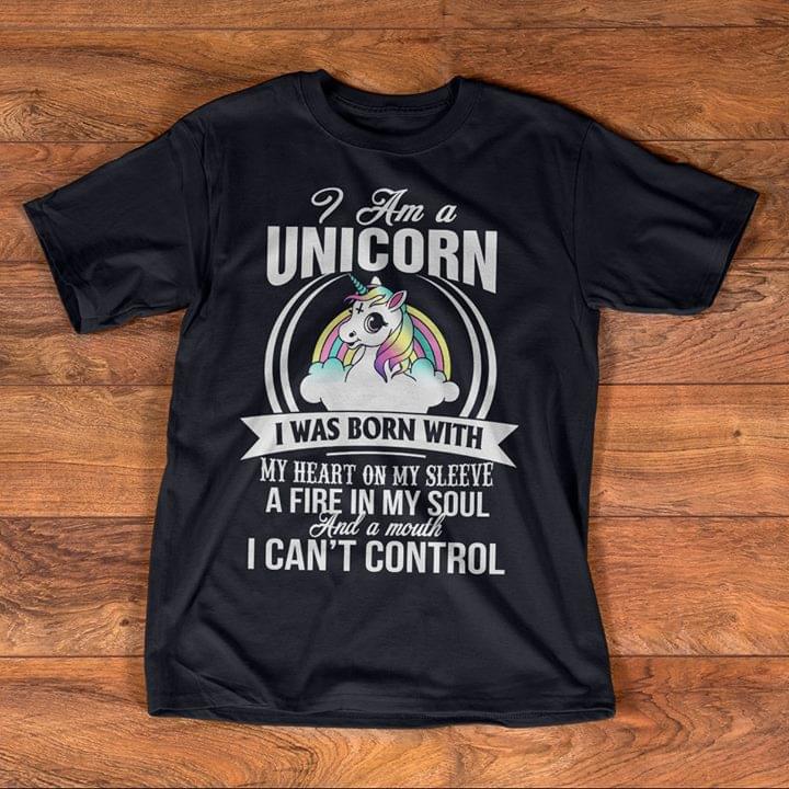I Am A Unicorn I Was Born With My Heart On My Sleeve Colorful Animated Unicorn Shirt