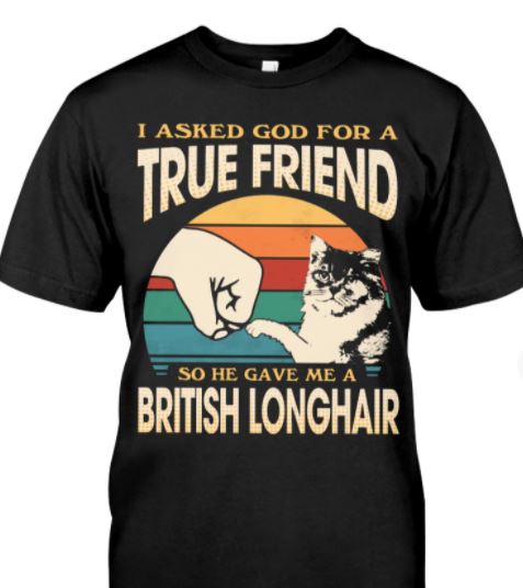 I Asked God For True Friend He Give Me British Longhair Cute Cat Vintage Shirt
