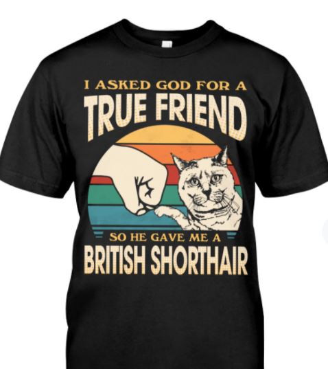 I Asked God For True Friend He Give Me British Shorthair Cute Cat Vintage Shirt