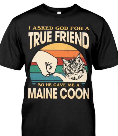 I Asked God For True Friend He Give Me Maine Coon Cute Cat Vintage Shirt