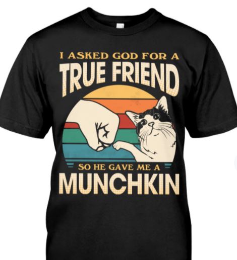 I Asked God For True Friend He Give Me Munchkin Cute Cat Vintage Shirt