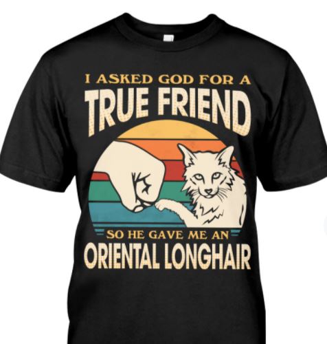 I Asked God For True Friend He Give Me Oriental Longhair Cute Cat Vintage Shirt