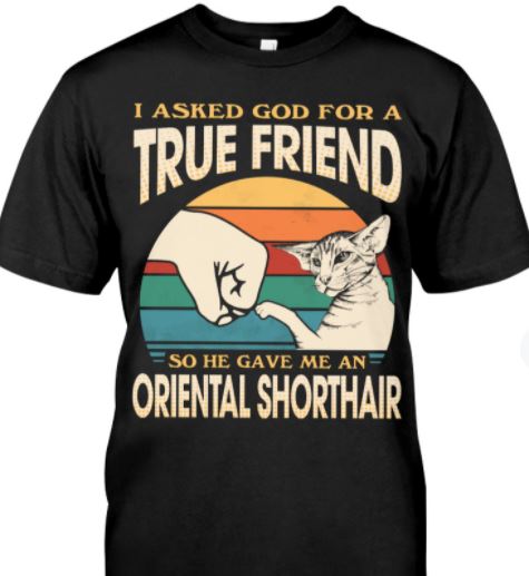 I Asked God For True Friend He Give Me Oriental Shorthair Cute Cat Vintage Shirt
