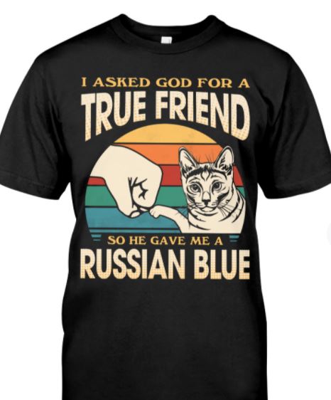 I Asked God For True Friend He Give Me Russian Blue Cute Cat Vintage Shirt