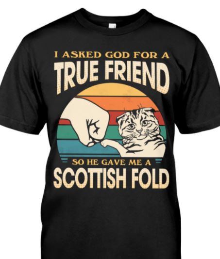 I Asked God For True Friend He Give Me Scottish Fold Cute Cat Vintage Shirt