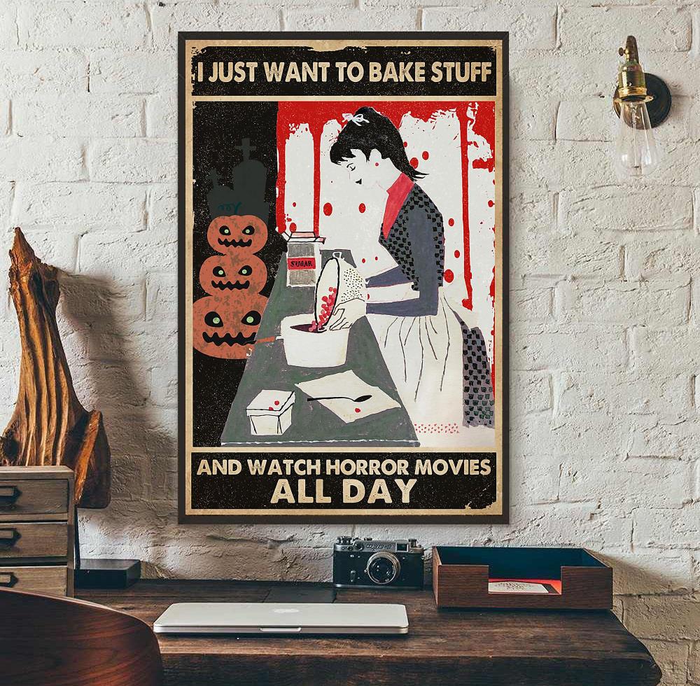 I Just Want To Bake Stuff Baking And Watch Horror Movies Poster Decor